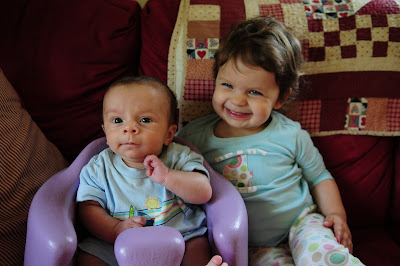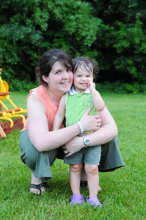 _______________________________________________________ Dear Emerson Grace, I cannot for the life of me understand how you just turned two years old yesterday...you are growing and learning and changing so fast before I know it you are going to be begging me for the car keys and $50 to go out to the mall with your friends...and sadly I bet that $50 will just barely cover a movie and a snack with the way prices are rising.  We had a couple of gatherings for your birthday, on Sunday your grammyand papa came over with Nicholas and Kevin.  They brought balloons and we had bugers and cake and you got to swing on your new swingset....oh the joys!! Then yesterday your aunties Becky and Emily came over with Momo and again you got to swing your little heart out....you got a beautiful blue sleeveless dress with white polka dots from your aunt Eileen who you share a birthday with promptly muddied it all up in the garden with your new gardening tools....then after your nap Sarah, Noah, Del and Josh came over quickly followed by Mike S. and grandma....we had grilled stuff and cake...again...and you got to swing on your swingset--pure bliss!  Noah got you two blueberry bushes and a book--what a cool present!!!  Grandma brought you your own little picnic table and you loved it!  It is so fun to see you interact with Noah now...you are so cute together.  At one point you wanted another freeze pop but Grandma wasn't going to give you one so Noah came over and gave you the sweetest smile and the rest of his green freeze pop--I'm not sure if you said thank you but you are usually super polite when recieving things.  You are, however, very vocal about things you are not happy with and shout, NO without holding back or THAT'S MINE in typical two year old fashion, but each and every time we talk about your swing set or go out to your swingset you say, "Thank you Mommy for my NEW swiiiingset, I love it!"  Too funny. Mommy made a pretty bad attempt at cake in ice cream cones on Sunday.....they didn't cook long enough and ended up as just batter....yuck....so we bought a cake with pink roses.  Then yesterday I made you another cake and I was going to decorate it like Elmo....until I realized I didn't have any black food coloring and you can't make Elmo without red and black....and my red cake dye just looked super pink so instead I frosted a hot pink cake with a big white "E" on the top and sprinkled it with your favorite--fruit snacks...blech!  Baby Chase was a basket case yesterday after a couple of hours of company so Daddy and I were in and out of the house trying to get him to sleep so that we could both focus on you....I don't think you noticed because you had friends and a new swingset!! Speaking of the swingset--it was supposed to come on June 4th, but it was raining that day and the truck it was on was stuck in traffic...you kept asking for it....luckily it came the next morning bright and early.  I think you thought it was going to pop off the truck all made and put together and ready to swing...no such luck, little chicken.  So you stood out there in the drizzling rain in your little purple crocs and watched the men take all of the pieces out of the truck.  Every few minutes you would say, "They're DONE, Mommy, can I swing!?"   It was sad to tell you that in fact they were not done and had more work to do.  At one point of the men had a few huge boards up on his shoulders and you looked at me very serious like and said, "Mommy, that man is strong in the shoulders..." and indeed he was.  Three hours after they arrived your swingset was ready--sadly you were sleeping.  I went in to wake you us after you had been napping for about 2 hours and I knew Chase would be down for a while longer and I told you....your new swingset is finished.  You hopped right up and out we went.   At first you wanted nothing to do with the slide or the castle part, you only wanted to swing and swing and swing...now you like it all and the only parts you are too little to use are the rock wall, the bioculars because they are too high, and the bouyee ball because it takes a lot to hold yourself up there and you get nervous.  I think your favorite is still to just sit in the bucket swing and get pushed--this is where you will often sing and sing and sing.  You love to sing the ABC's, the Itsy-Itsy spider (who you say climbed up the rain), the Wheels on the Bus, Where 'O Where has my Daddy gone, Happy Birthday to Emmie, and a few more that I can't think of right now...you sing a lot.  You still love love love signing.  I can't believe it is such a big part of your life.  You will often now put your fingers in a funny position and say, "What am I signing, Mommy?" sometimes it is an "F" or another letter, but often it is nothing I know of and you don't understand why I am not fluent in sign like I am in English.  We had to look up some signs for you that you were insisting on like lemonade and doctor, nurse and hospital when we were bringing Chase to the geneticist.   You love love love your baby brother as well.  Sometimes your still a little evel with the smacking and pinching and hair pulling, but for the most part you are just looking for attention when you do that and a couple hugs and tickles sent your way will make it stop.  You love to kiss him and hold him and talk to him and you think it is hilarious when he laughs at you.  You often want your picture taken with him and demand that I put him in the bumbo.  When it gets later in the day and you get tired, though, you tell me to put him in the swing and hold you.   You are such a big girl, but such a little girl who still needs mommy loves and snuggles all at the same time.  You continue to make me laugh and smile.  You still like to be rocked to sleep, but on a few occasions you tell me to sit in the rocking chair while you go in your crib-ey and you amaze me when you fall asleep all on your own.  You still like to be worn and often ask to get in a wrap to go out to the gri